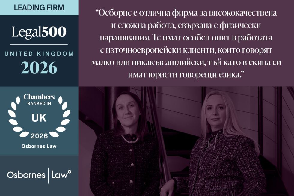 „Осборнс Лоу“ още веднъж бяха отличени като една от водещите кантори за физически наранявания в Обединеното кралство и остават единственият български екип, класирал се както в Chambers and Partners, така и в The Legal 500 2026.